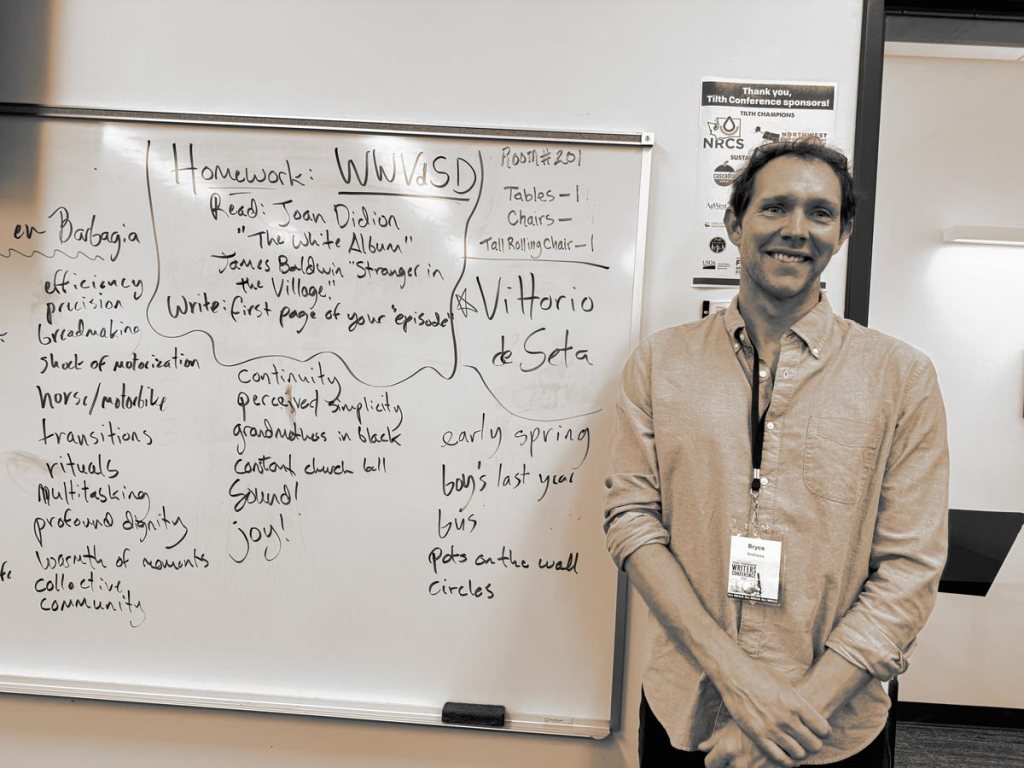 My experience was completely wonderful. Bryce is a gifted and innovative teacher. He pushed us beyond our usual thinking with challenging, unexpected material and multiple ways of looking at narrative. I am deeply grateful for the writers he introduced us to, and I am avidly reading new authors daily, furiously marking up the margins of William Kittredge and John D’Agata. Any class is as much about one’s peers as the instructor, and I was fortunate to land in a deeply thoughtful and empathetic group, with a fascinating range of life experience. I have never been in graduate school, but it felt like what that should be. In my own writing I was startled to find that an idea I’ve been thinking about for years as a series of poems might be a completely different form, and at the conference I completed two chapters of what appears to be a book. Whether it turns out to be conventional narrative or something more adventurous will take some time.